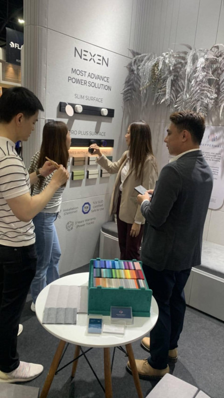ภายในบูธ Nexen ได้จัดแสดง รางปลั๊กไฟดีไซน์ล้ำ หลากหลายรุ่น เพื่อตอบโจทย์ไลฟ์สไตล์และความต้องการของผู้บริโภคยุคใหม่ งานนี้ทีมล่ามของเราช่วยให้การพูดคุยกับลูกค้าทั้งชาวไทยและต่างชาติเป็นไปอย่างลื่นไหลและมืออาชีพ