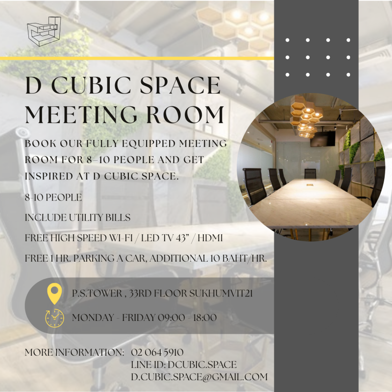 Our comfy meeting room at D CUBIC SPACE is ready for your next team huddle, pitch, or planning session.