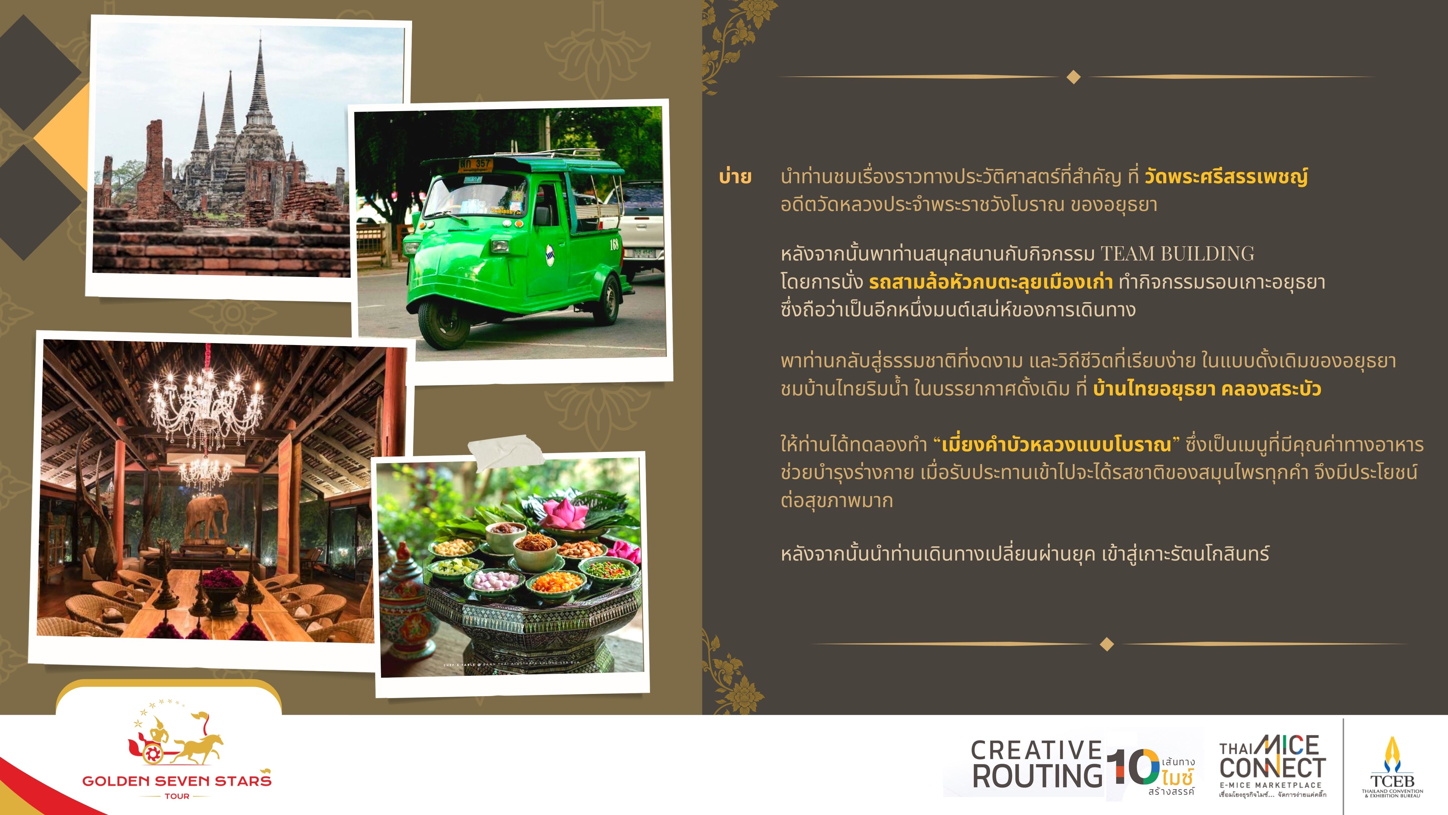 โกล์เด็นเซเว่นสตาร์สทัวร์ พาสัมผัสมนต์เสน่ห์ของเรื่องราวทางประวัติศาสตร์ สมัยกรุงศรีอยุธยา ตลอดมาจนถึง กรุงรัตนโกสินทร์