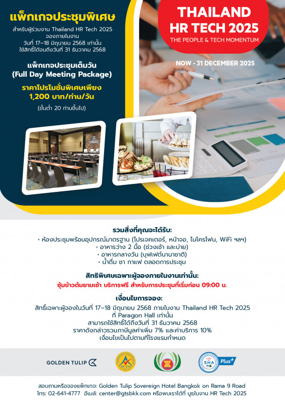 แพ็กเกจประชุมพิเศษ สำหรับผู้ร่วมงาน Thailand HR Tech 2025