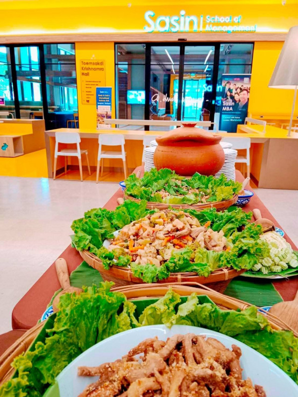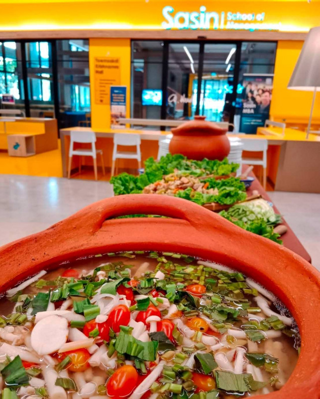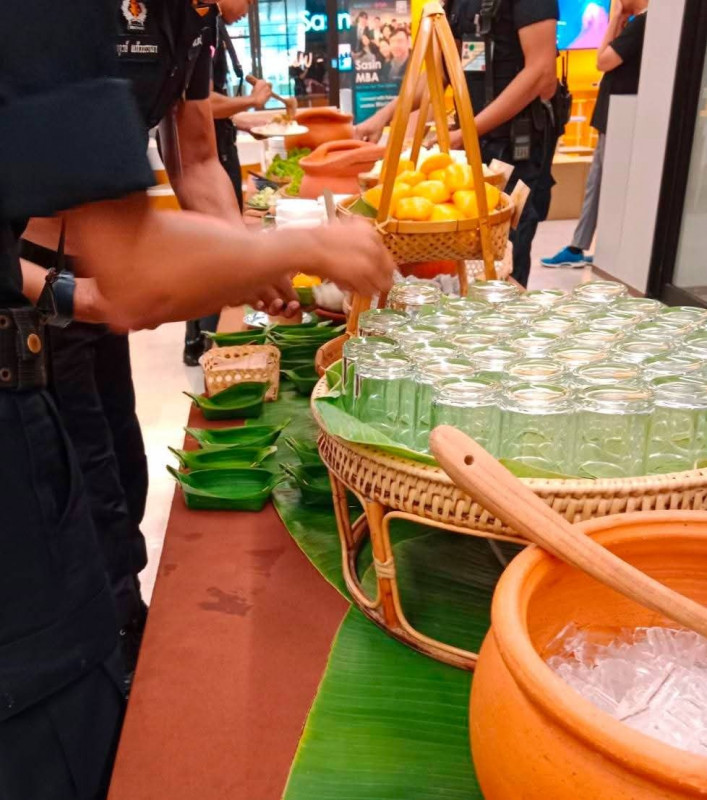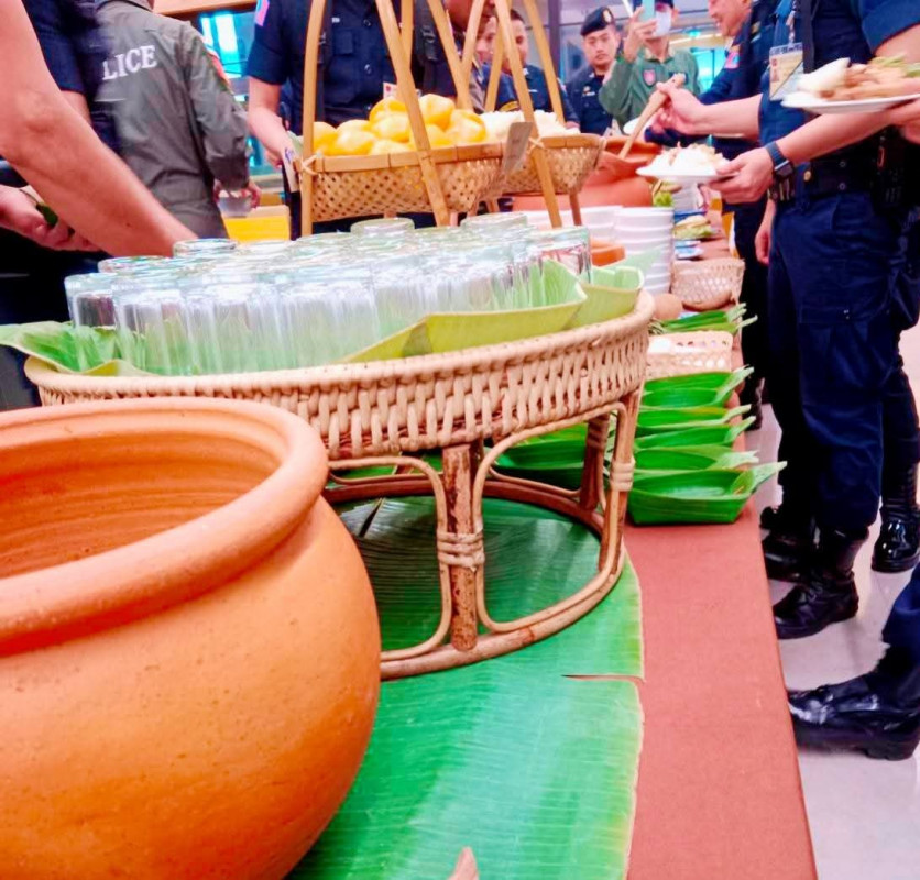 อาหารไทย ขนมไทย น้ำสมุนไพร มาพร้อมกับหม้อดินใบใหญ่ ขันโตก ชั้นหวาย ใบตอง และกระทงใบตอง