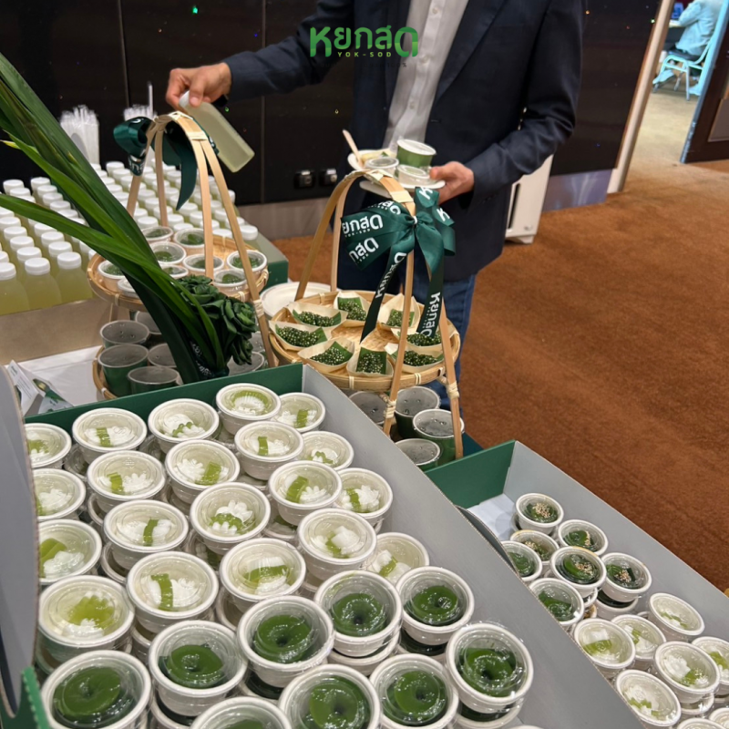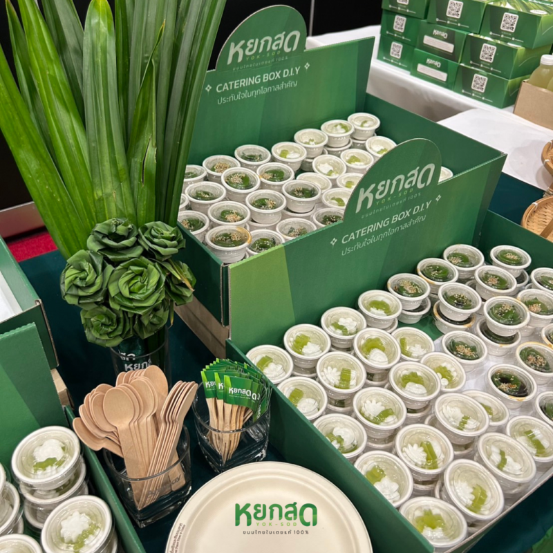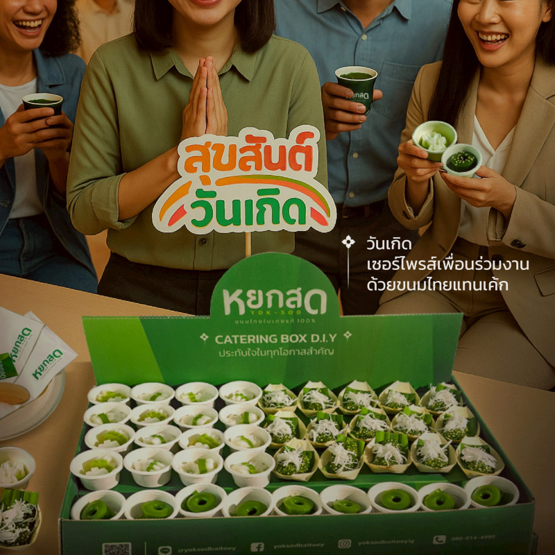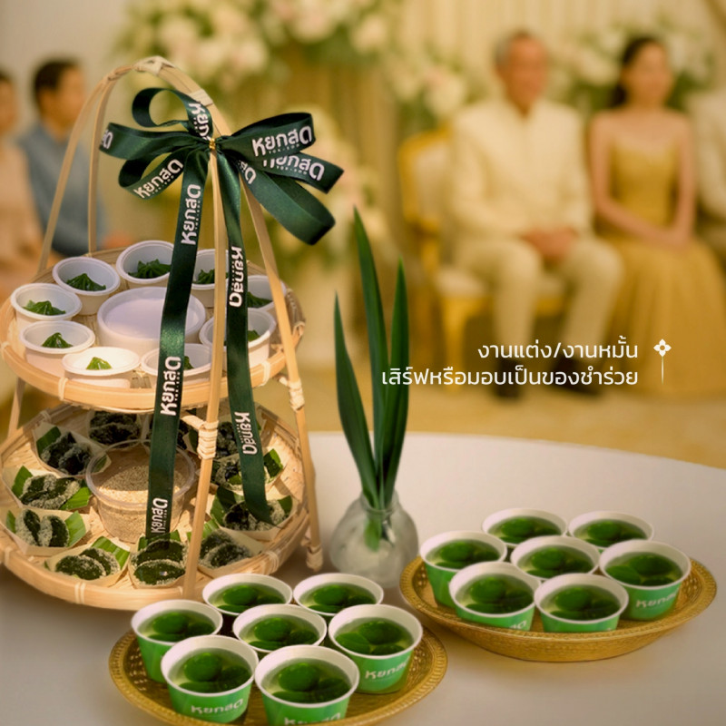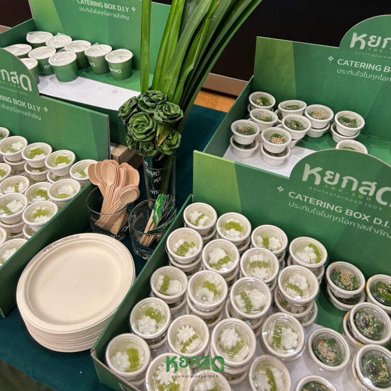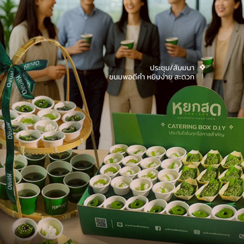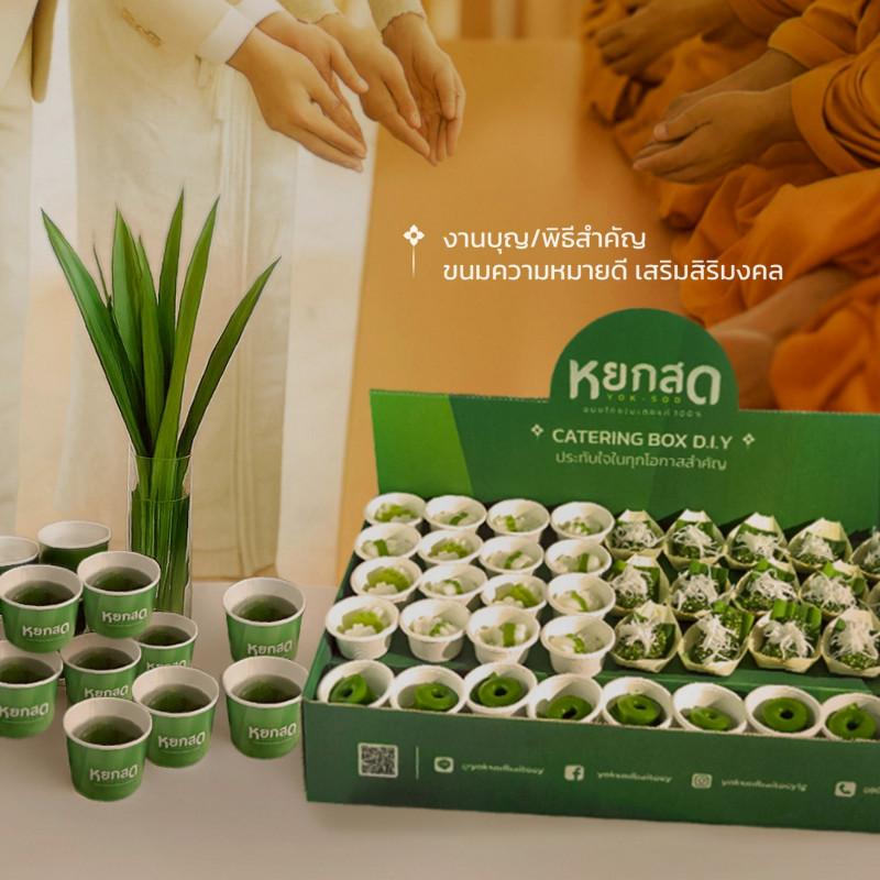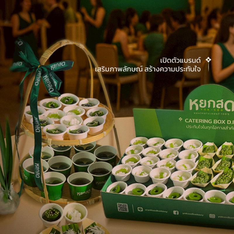 หากกังวลกับงานจัดเลี้ยงขนมไทยที่ต้องสั่งขนมขั้นต่ำจำนวนเยอะกว่าผู้ร่วมงาน หรือต้องการงานจัดเลี้ยงขนมไทยขนามย่อม เช่นเลี้ยงพระ วันเกิด จับน้ำชายามบ่ายกับเพื่อนๆ หยกสดขอเสนอทางเลือกใหม่ของการจัดเลี้ยงขนมไทย ที่คุณสามารถตกแต่งและจัดวางได้เองตามสไตล์งาน จำนวนขั้นต่ำเริ่มเพียง 15 ท่าน จัดวางได้ด้วยตัวคุณเอง