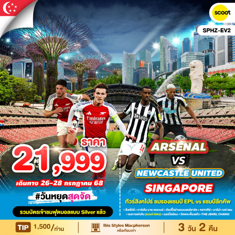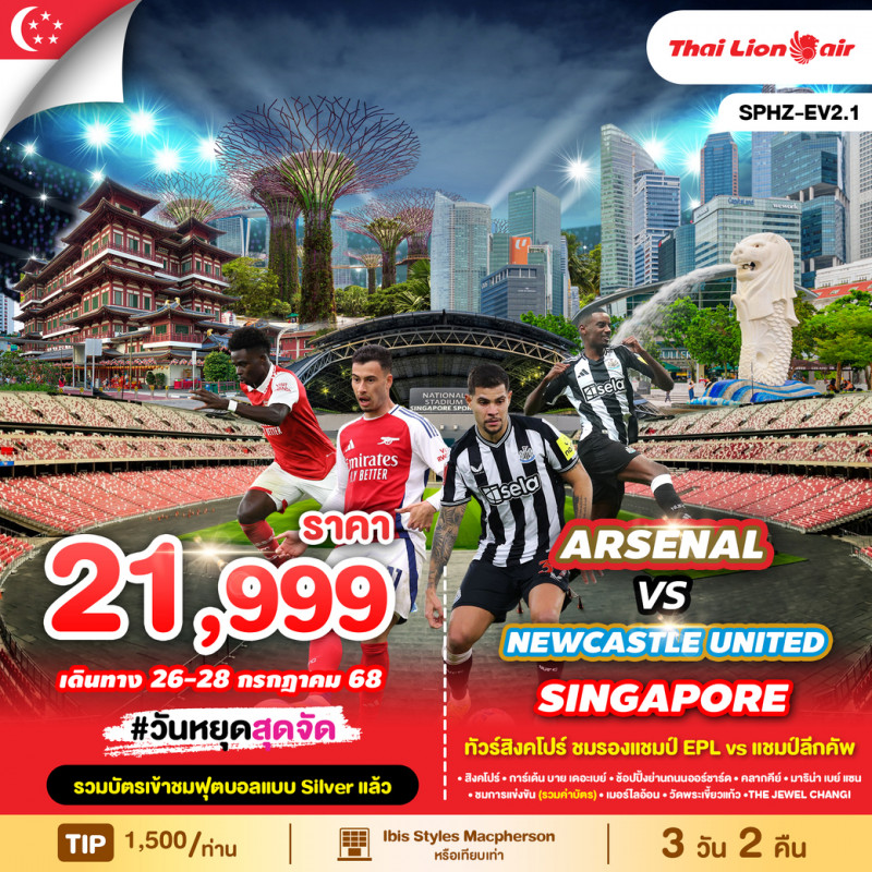 ทัวร์สิงคโปร์ ชมรองแชมป์ EPL VS แชมป์ลีกคัพ 3วัน 2คืน (TR)