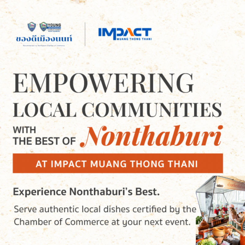Make your event stand out with local taste and meaningful impact. Let IMPACT Muang Thong Thani and the Best of Nonthaburi make every moment delicious and unforgettable.