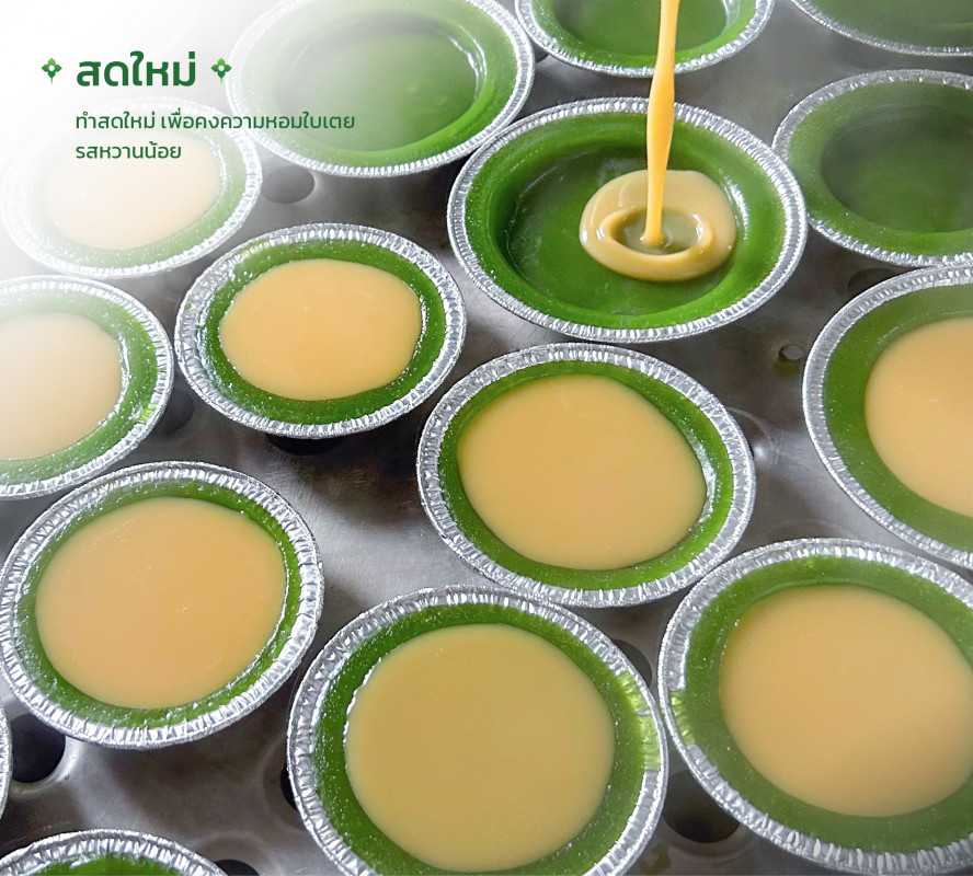 ขนมไทยใบเตยแท้ 100% จากหยกสด หอมใบเตย หวานน้อย อร่อยลงตัว เหมาะสำหรับงานเลี้ยงรับรองแขก หรือเป็นของขวัญขอบคุณในวันพิเศษ ให้เราช่วยเนรมิตวันสำคัญของคุณให้น่าจดจำ พร้อมดูแลครบทุกขั้นตอน
