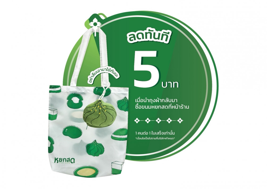 และเมื่อนำถุงผ้ามาใช้ซ้ำ รับส่วนลดเพิ่มอีก 5 บาททุกครั้ง