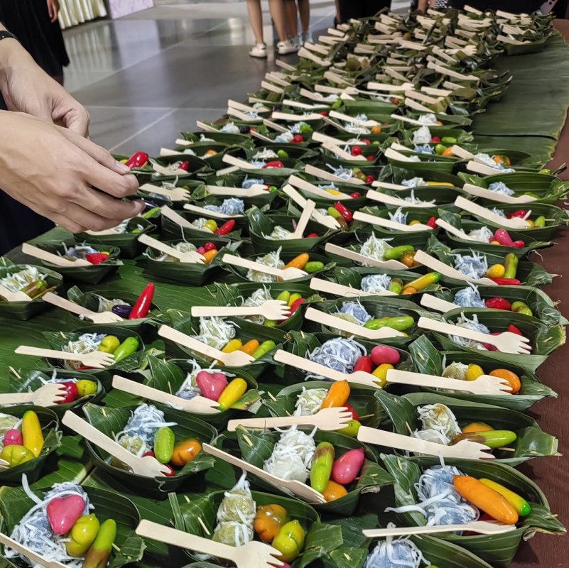 ความตั้งใจของเรา : พยายามที่สุดที่จะทำให้เห็น เกือบทุกอย่างในงานของเราทำจากธรรมชาติที่ถึงเวลาจะย่อยสลายไปเอง ด้วยความตั้งใจ ฝีมือของเรา ฝีมือคนไทย