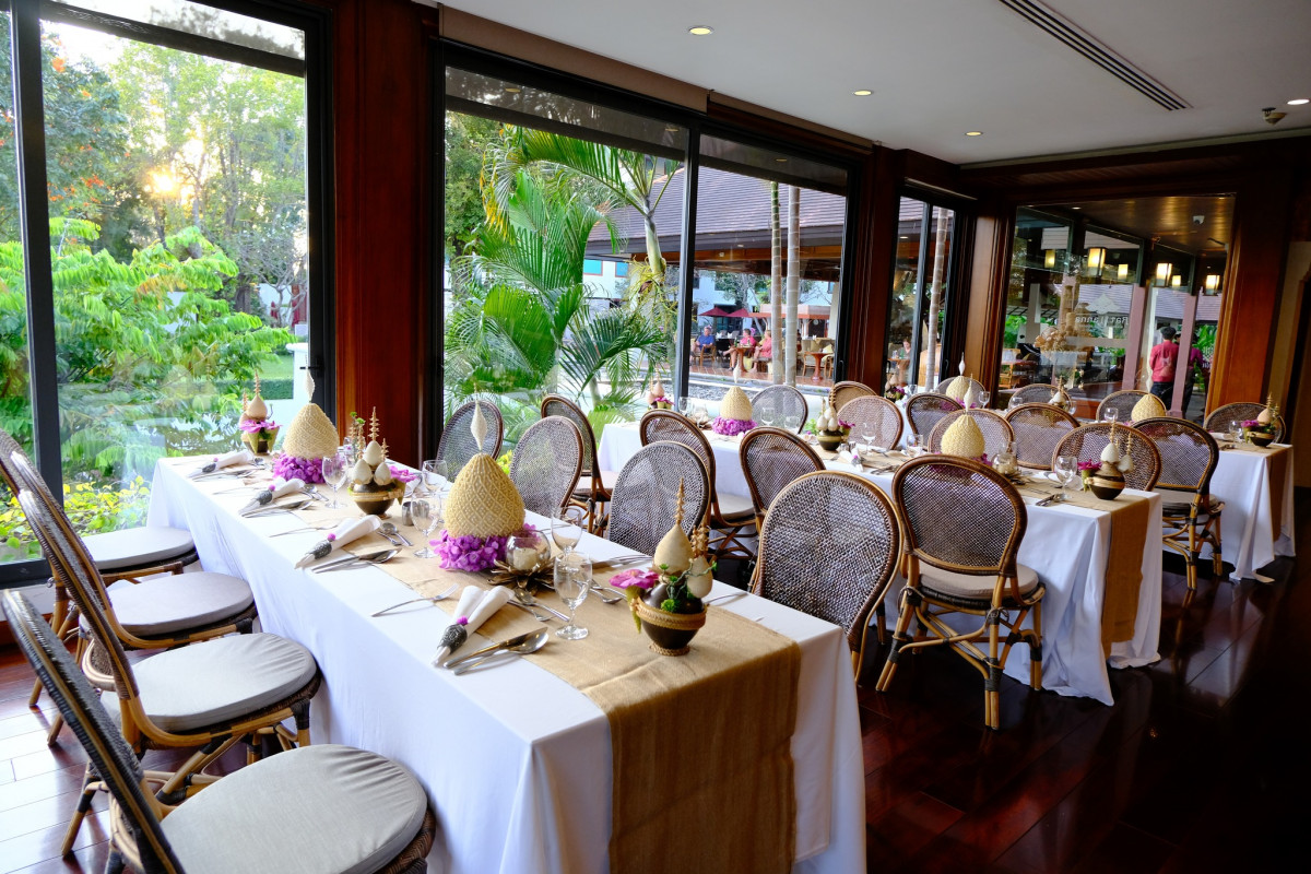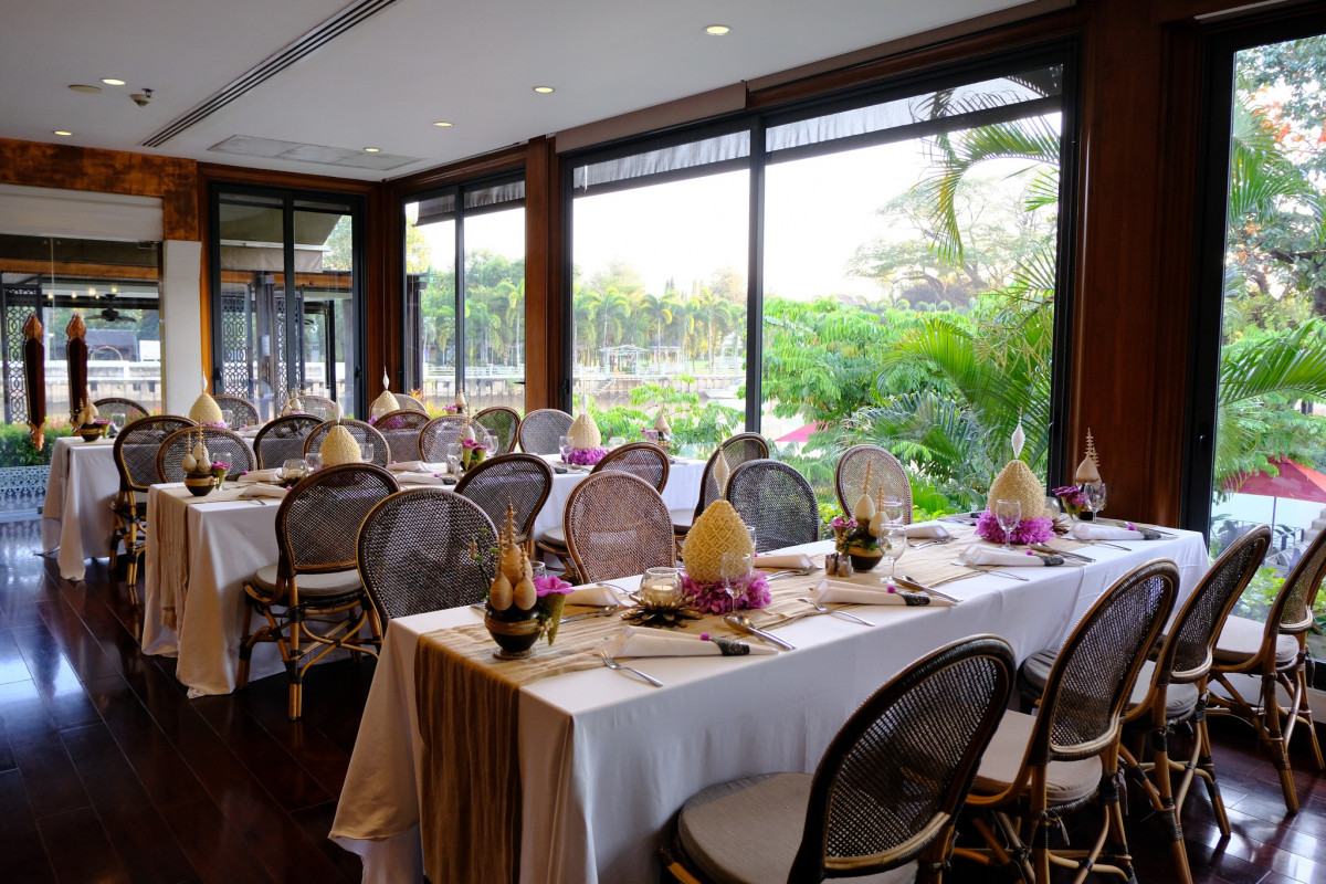 พื้นที่รับรองที่การจัดงานพิเศษ ถูกออกแบบอย่างประณีต บรรยากาศห้องอาหารที่ติดริมน้ำและ แสงธรรมชาติอ่อนละมุน สร้างความรู้สึกอบอุ่น หรูหรา และเป็นส่วนตัว เหมาะสำหรับงานเลี้ยงอาหารค่ำ งานฉลอง หรือดินเนอร์สุดพิเศษ