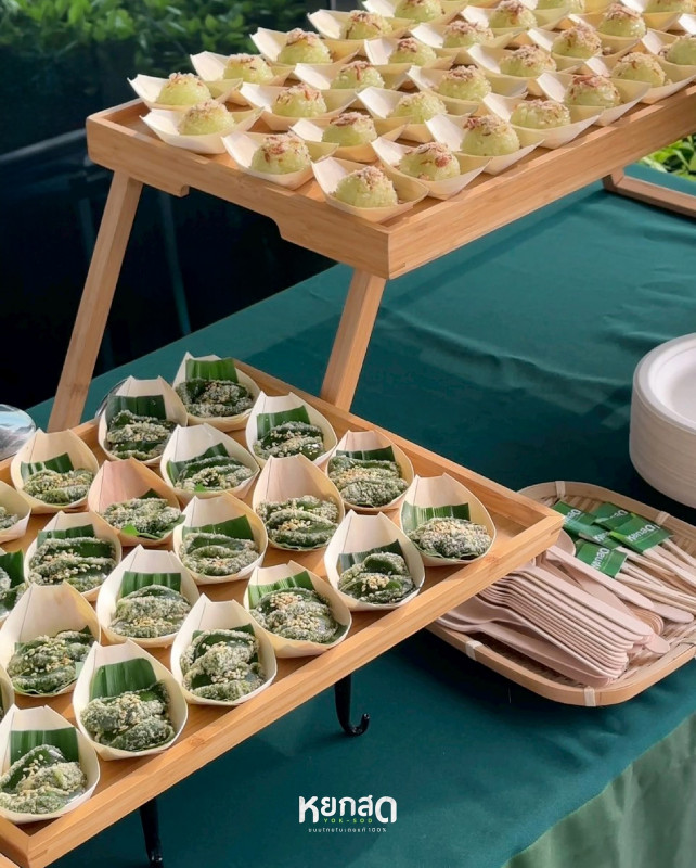 ด้วยเอกลักษณ์ของขนมไทยที่ใช้ใบเตยแท้ หวานน้อย กลิ่นหอมละมุน ช่วยเพิ่มความสดชื่นให้กับแขกในงานได้อย่างลงตัว ไม่ว่าจะเป็นปาร์ตี้ครอบครัว งานบริษัท งานอีเวนท์ หรือกิจกรรมสังสรรค์