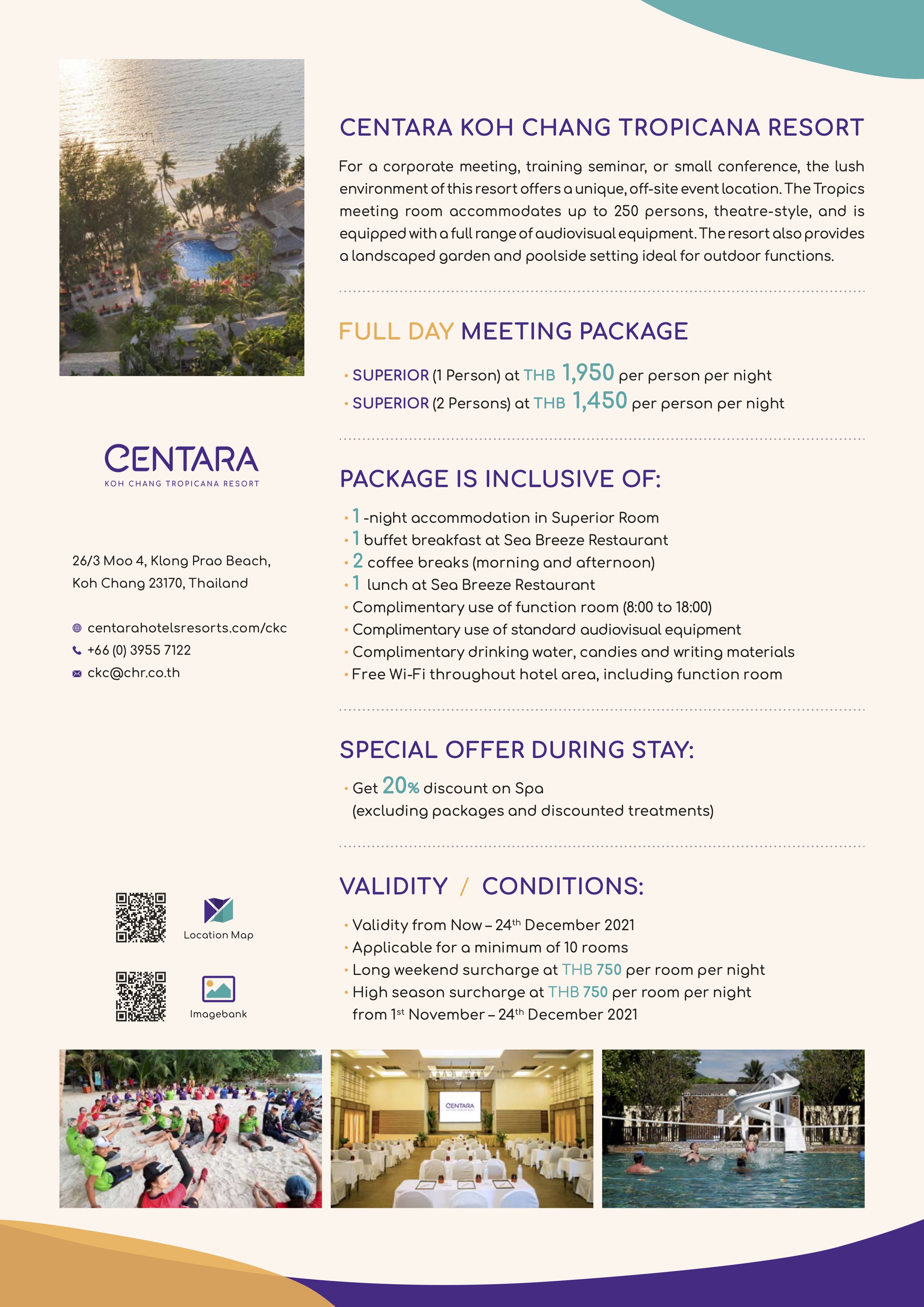 For a corporate meeting, training seminar, or small conference, the lush environment of this resort offers a unique, off-site event location. The Tropics meeting room accommodates up to 250 persons, theatre-style, and is equipped with a full range of audiovisual equipment. The resort also provides a landscaped garden and poolside setting ideal for outdoor functions.
