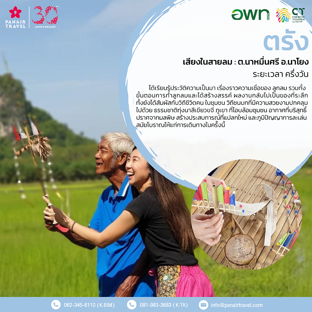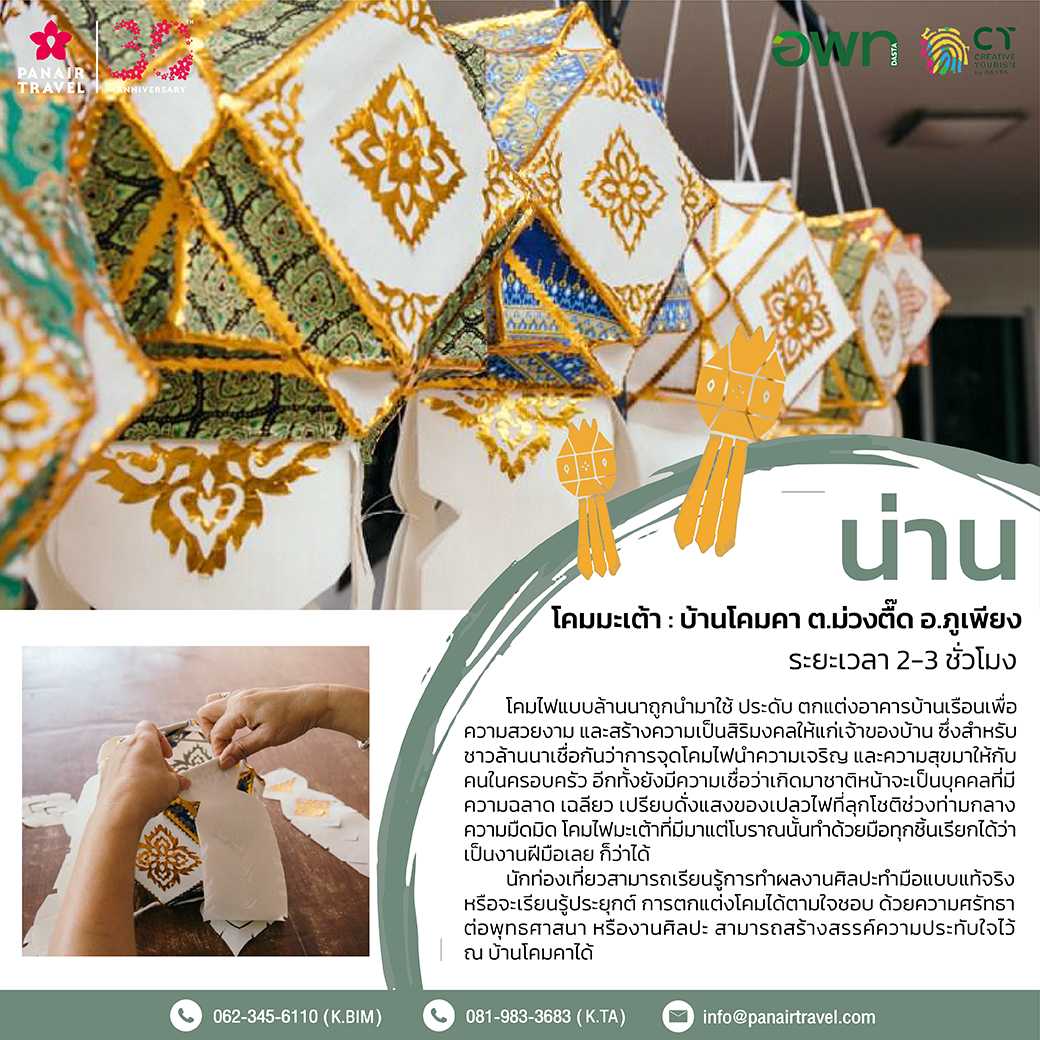 เราขอนำเสนอการท่องเที่ยวเชิงสร้างสรรค์ทั้ง 11 จังหวัดให้ทุกท่านได้เลือกสรรได้แก่ น่าน เลย สุโขทัย สุพรรณบุรี อุบลราชธานี เพชรบุรี ประจวบคีรีขันธ์ ชลบุรี สมุทรปราการ ระนอง และตรัง