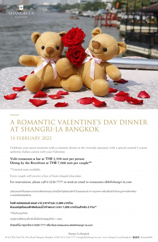เฉลิมฉลองค่ำคืนแสนหวานกับคนพิเศษของคุณ ด้วยมื้อค่ำสุดโรแมนติกที่ โรงแรมแชงกรี-ลา กรุงเทพฯ พร้อมดื่มด่ำไปกับเมนูอาหารอิตาเลียน 5 คอร์สเลิศรสชุดพิเศษ