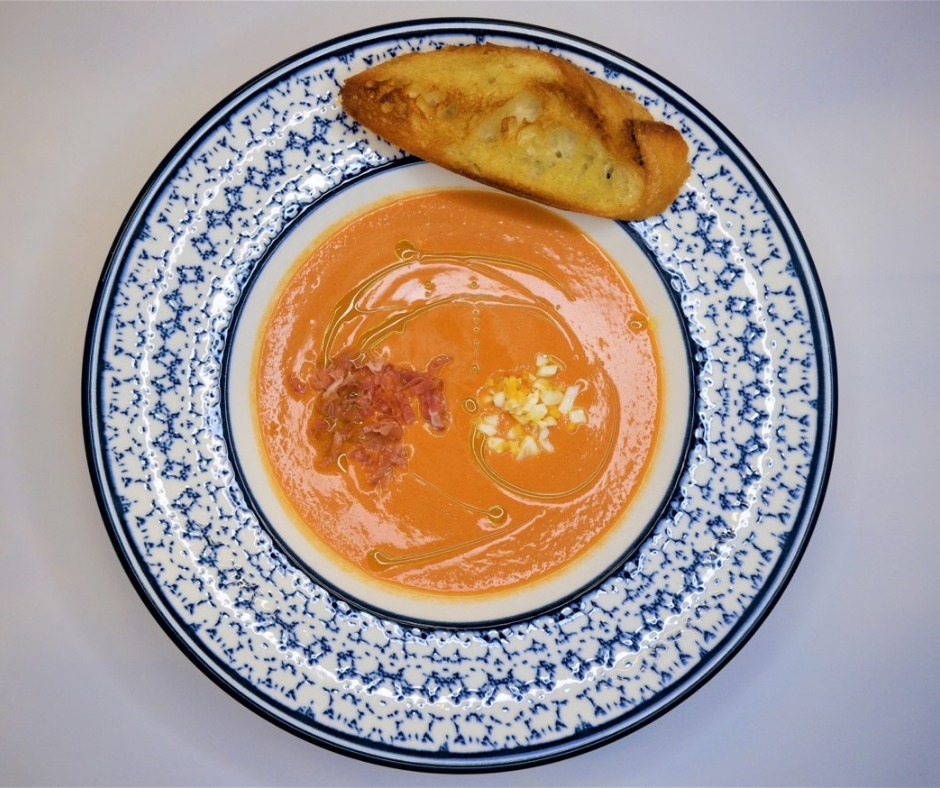 Salmorejo con Tomate Triturado or a chilled, fresh tomato soup made with organic tomatoes from Origin Farm. It is one of the standout dishes on Executive Chef Billys 360^0 cuisine menu and will be available soon at Melia Chiang Mais Laan Na Kitchen.