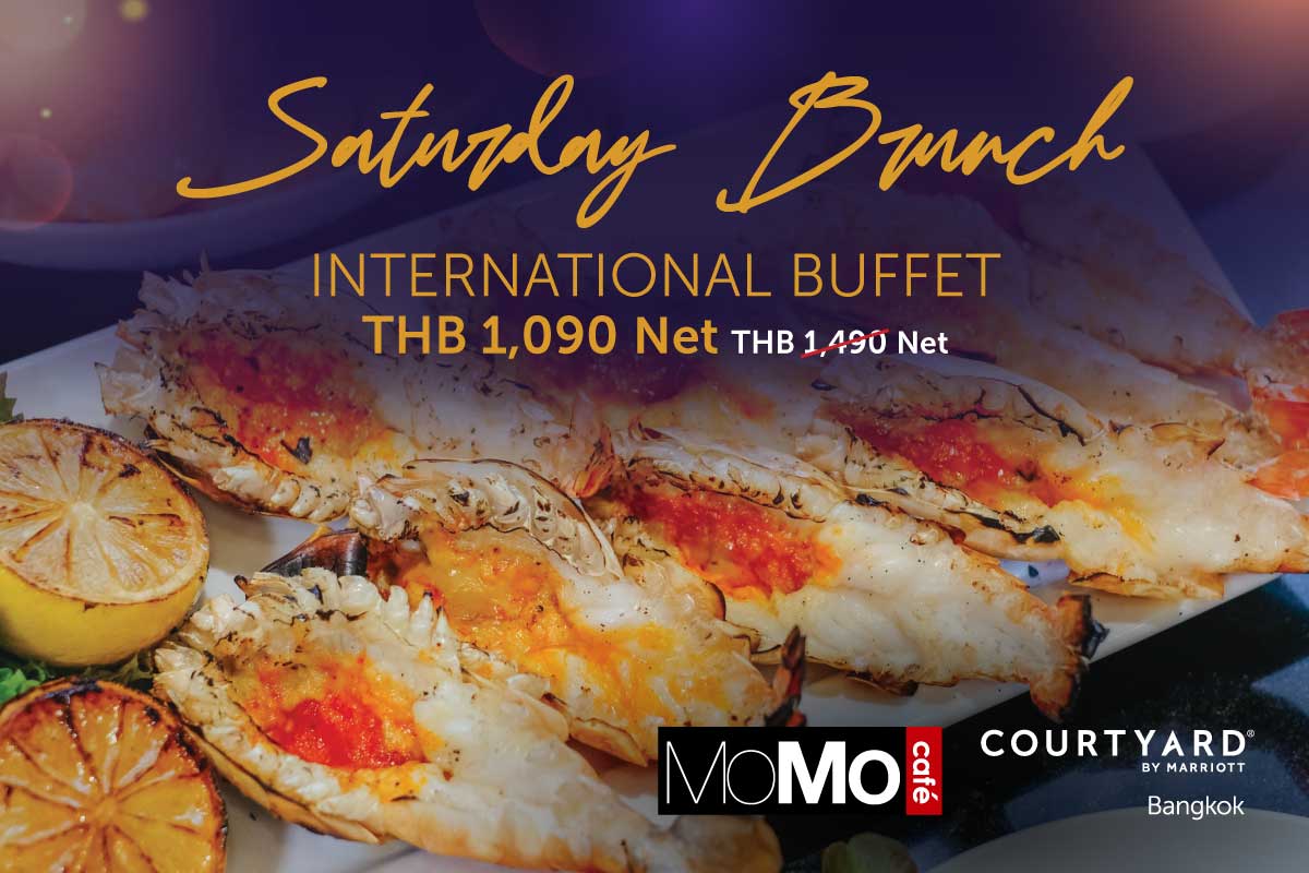 ห้องอาหารโมโม่ คาเฟ่ เปิดให้บริการบุฟเฟ่ต์นานาชาติ มื้อสายวันเสาร์ ตั้งแต่เวลา 12:00 น. - 15:00 น.