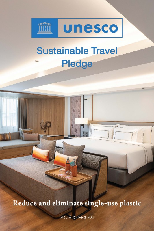 which gives its commitment to support UNESCOs goal to reduce and eliminate single-use plastic, promote the use of organic materials that help save the earth and add value to local resources. This ultimately helps promoting sustainable travel in Thailand to preserve beautiful travel destinations and support local culture and communities and artists via The Gallery store in the hotel further aiding to conserve local culture and generate income for the community