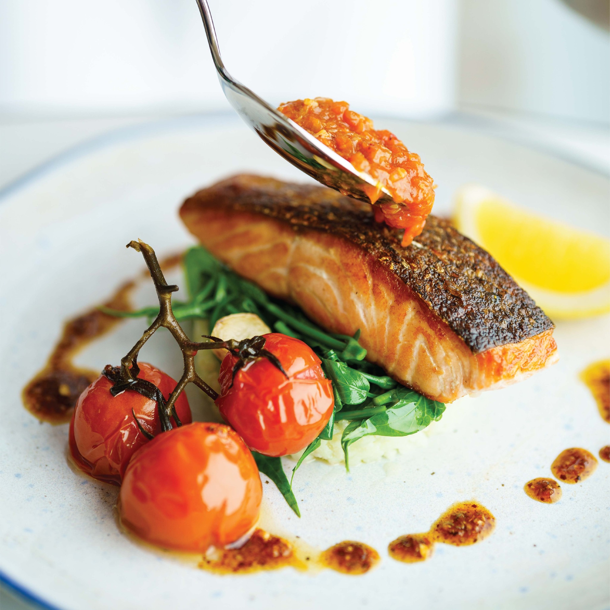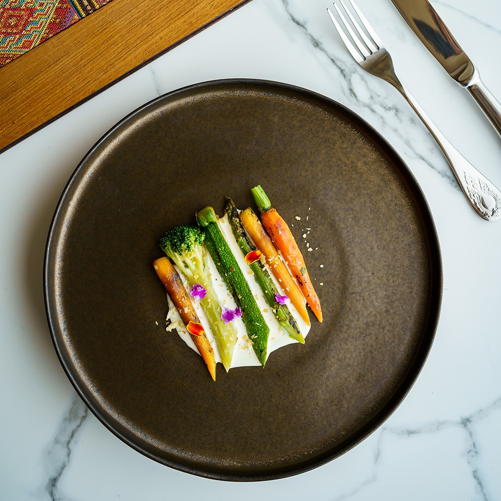 ส่วนผักอบสมุนไพร เป็นอาหารที่เหมือนจะเป็นอาหารสุขภาพธรรมดา แต่เชฟจะสร้างสรรค์อาหารจานนี้จากผักสดประจำวันที่ส่งตรงจากฟาร์มออร์แกนิคของโรงแรม รับประทานกับซอสสูตรเฉพาะที่มีกลิ่นหอมของเปลือกส้มโอ ให้ทุกท่านได้รับประทานอาหารจากวัตถุดิบคุณภาพและอุดมไปด้วยวิตามินและแร่ธาตุ อีกทั้งอร่อยและดีต่อสุขภาพ
