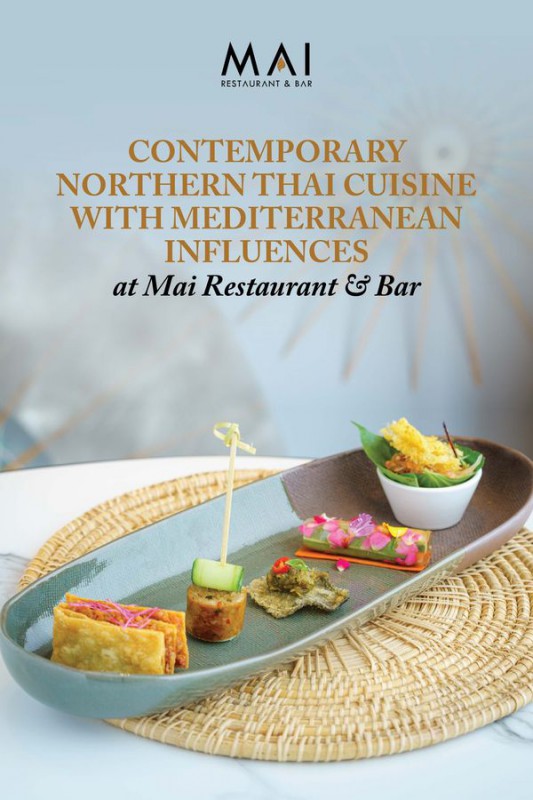 พลาดไม่ได้ กับเมนูจานออเดิร์ฟไหม หรือ Mais Samplers ที่มีอาหารขนาดพอดีคำ 5 ชนิดแสนอร่อย ได้แก่ ไส้อั่ว, น้ำพริกหนุ่มหนังปลาแซลมอน, สลัดโรลดอกไม้กินได้, น้ำพริกอ่องตอติลญ่า และยำส้มโอกับปลาดุกฟู