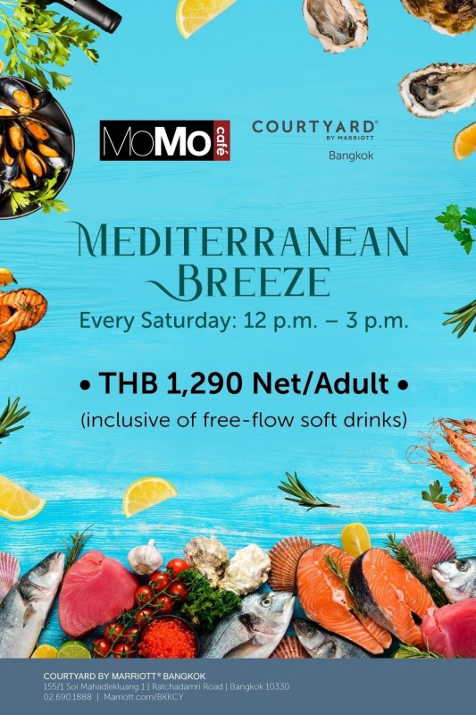 เชิญเพื่อนและครอบครัวของคุณมาร่วมสัมผัส"สายลมแห่งเมดิเตอร์เรเนียน"ด้วยกันทุกวันเสาร์ที่ห้องอาหารโมโม่ คาเฟ่