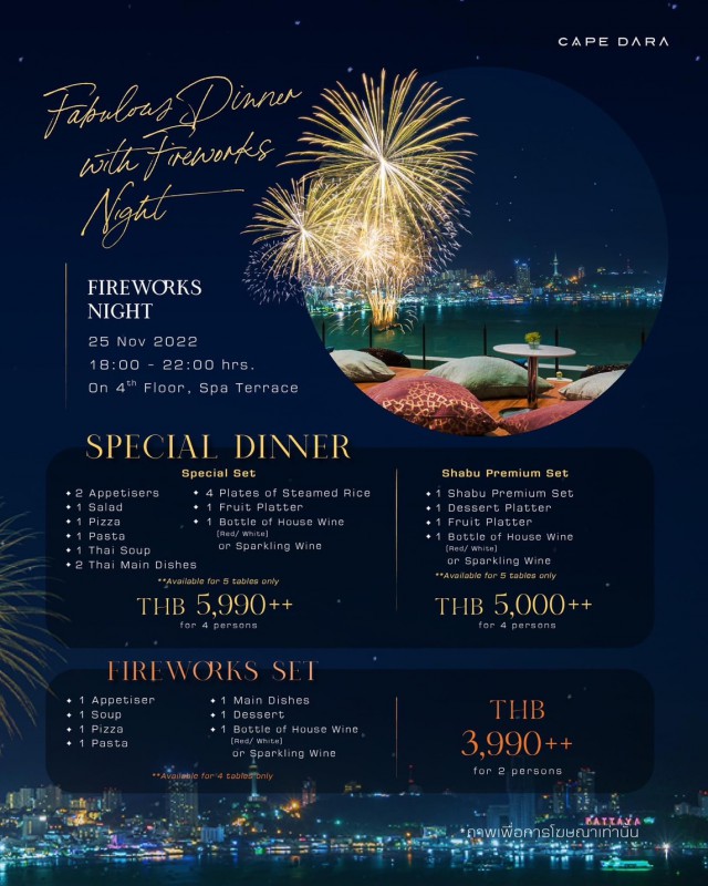 จองมื้ออาหารค่ำสุดพิเศษ พร้อมชมพลุๆ ตระการตา
