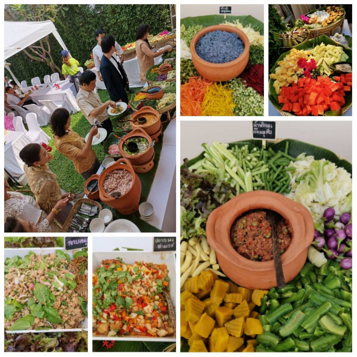 บุฟเฟต์แบบไทยๆ หม้อดิน ไห โตก ชั้นหวาย ต้องมี พร้อมอุปกรณ์ตกแต่งสวยงาม พร้อมอาหารไทย ขนมไทย น้ำสมุนไพรไทย