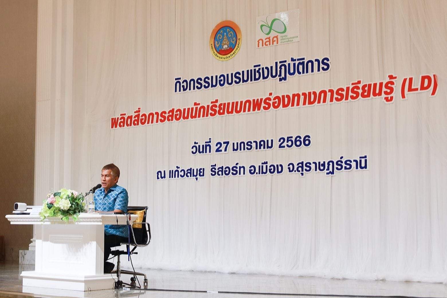 ภาพบรรยากาศการจัดกิจกรรมอบรมเชิงปฏิบัติการผลิตสื่อการสอนนักเรียนบกพร่องทางการเรียนรู้ (LD) ในจังหวัดสุราษฎร์ธานี โดยมี ดร.ปรเมษฐ์ จินา รองนายกองค์การบริหารส่วนจังหวัดสุราษฎร์ธานี เป็นประธานเปิดกิจกรรมอบรมเชิงปฏิบัติการผลิตสื่อการสอนนักเรียนบกพร่องทางการเรียนรู้ (LD) ในจังหวัดสุราษฎร์ธานี ณ ห้องสมใจหมาย โรงแรมแก้วสมุยรีสอร์ท อำเภอเมืองฯ จังหวัดสุราษฎร์ธานี โดยมี นางสาวมณฑากานติ์ติ เพชรอักษร สนง.เขตพื้นที่การศึกษาประถมศึกษานครศรีธรรมราช เขต 1 และ นางสาวนัฐฐาภรณ์ ตั้งคำ สนง.เขตพื้นที่การศึกษาประถมศึกษาตรัง เขต 2 มีเป็นวิทยากรในการอบรม