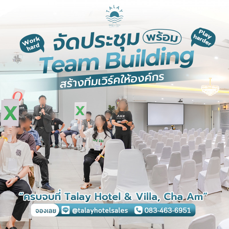 ประชุม อบรม สัมมนา 'ระดับองค์กร' อย่างสมบูรณ์แบบที่ Talay Hotel & Villa, Cha Am ราบรื่นไม่มีสะดุดด้วยอินเทอร์เน็ตความเร็วสูง (Wi-Fi) โปรเจคเตอร์ ไมโครโฟนไร้สาย และเครื่องเสียงคุณภาพดี พร้อมทีมงานคุณภาพ คอยดูเเลตลอดงาน อุปกรณ์การประชุมครบครัน...