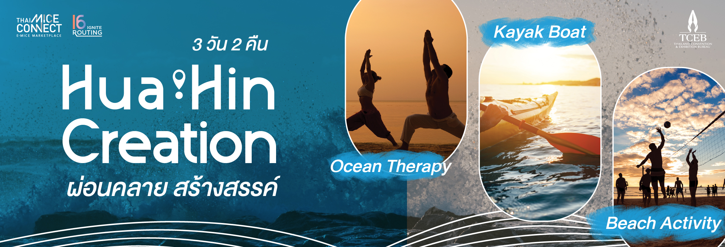 ออกจากห้องประชุมแล้วมาสร้างความทรงจำสุดพิเศษร่วมกับทีมริมชายหาดหัวหิน ผ่อนคลายไปกับธรรมชาติ เติมพลังด้วยกิจกรรมสุดสนุก และกระชับความสัมพันธ์ให้แน่นแฟ้นยิ่งขึ้น ที่ไม่ใช่แค่ทริป...แต่คือประสบการณ์ที่จะทำให้ทีมของคุณแข็งแกร่งและสร้างสรรค์กว่าที่เคย