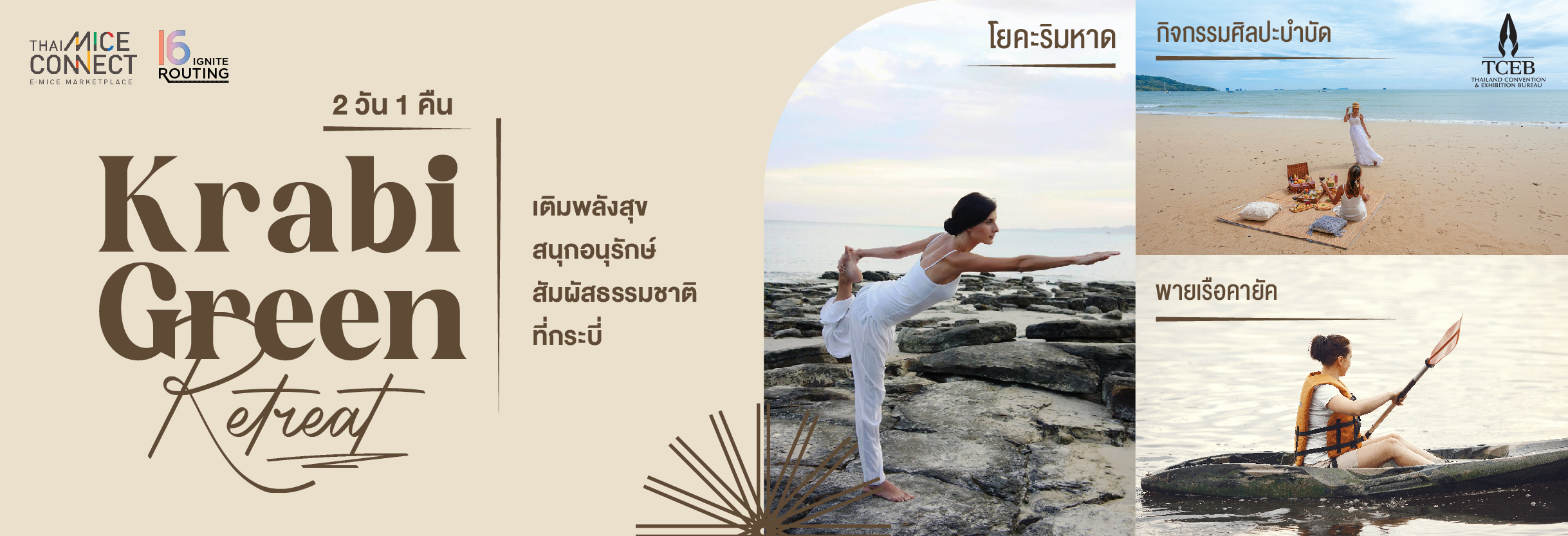 “Krabi Green Retreat” โปรแกรม 2 วัน 1 คืน การเดินทางครั้งนี้กระบี่ไม่ได้เป็นเพียงจุดหมายปลายทาง แต่เป็นเวทีของการได้เริ่มทำสิ่งใหม่ พร้อมหรือยังที่จะให้ท้องฟ้าสีครามและเสียงคลื่นของกระบี่เป็นแรงบันดาลใจครั้งใหม่ของคุณ แล้วคุณจะหลงรักกระบี่แบบไม่มีวันลืม
