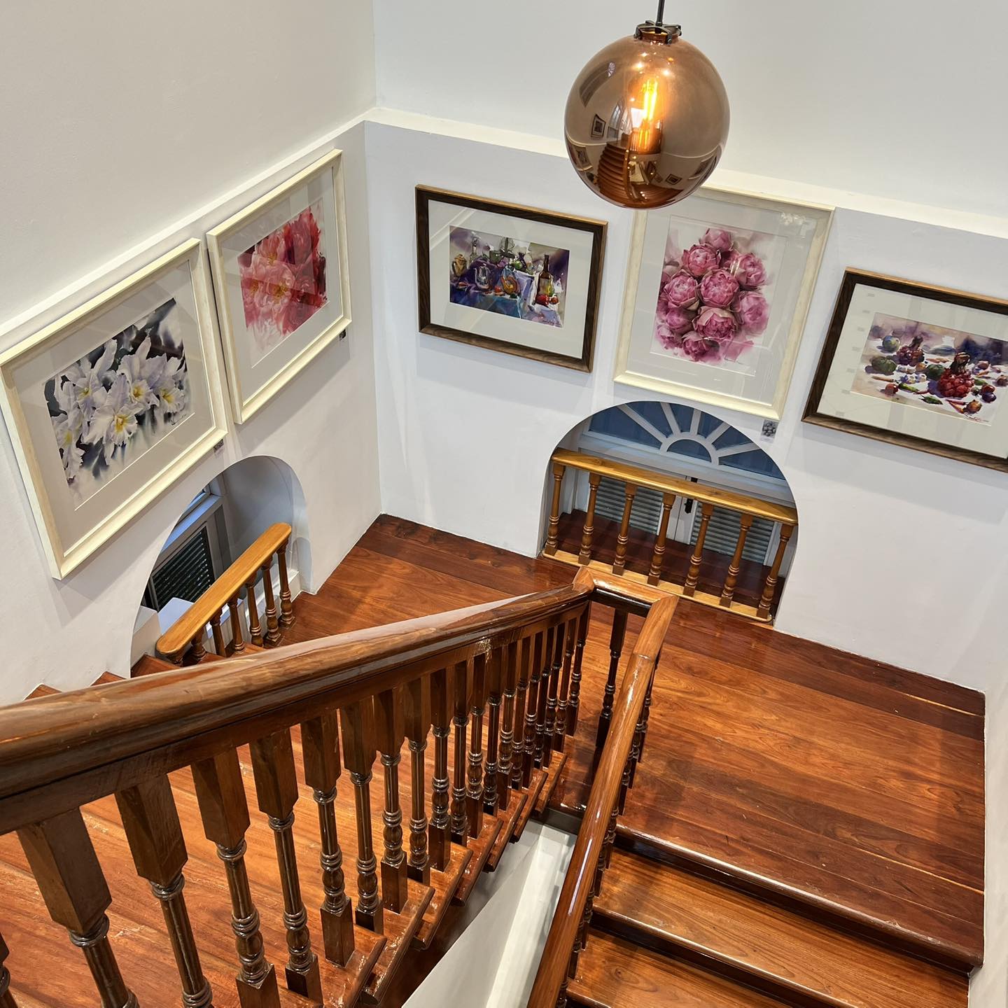 ตัวอาคารสีขาวสะอาดตาที่มีหน้าต่างบานสูงและโถงทางเดินไม้ คือหัวใจสำคัญที่ทำให้การดูงานศิลปะที่นี่ต่างออกไป แสงแดดที่ลอดผ่านแมกไม้นอกหน้าต่างเข้ามาตกกระทบงานศิลปะในห้องต่างๆ สร้างบรรยากาศที่ทั้งสงบและอบอุ่น