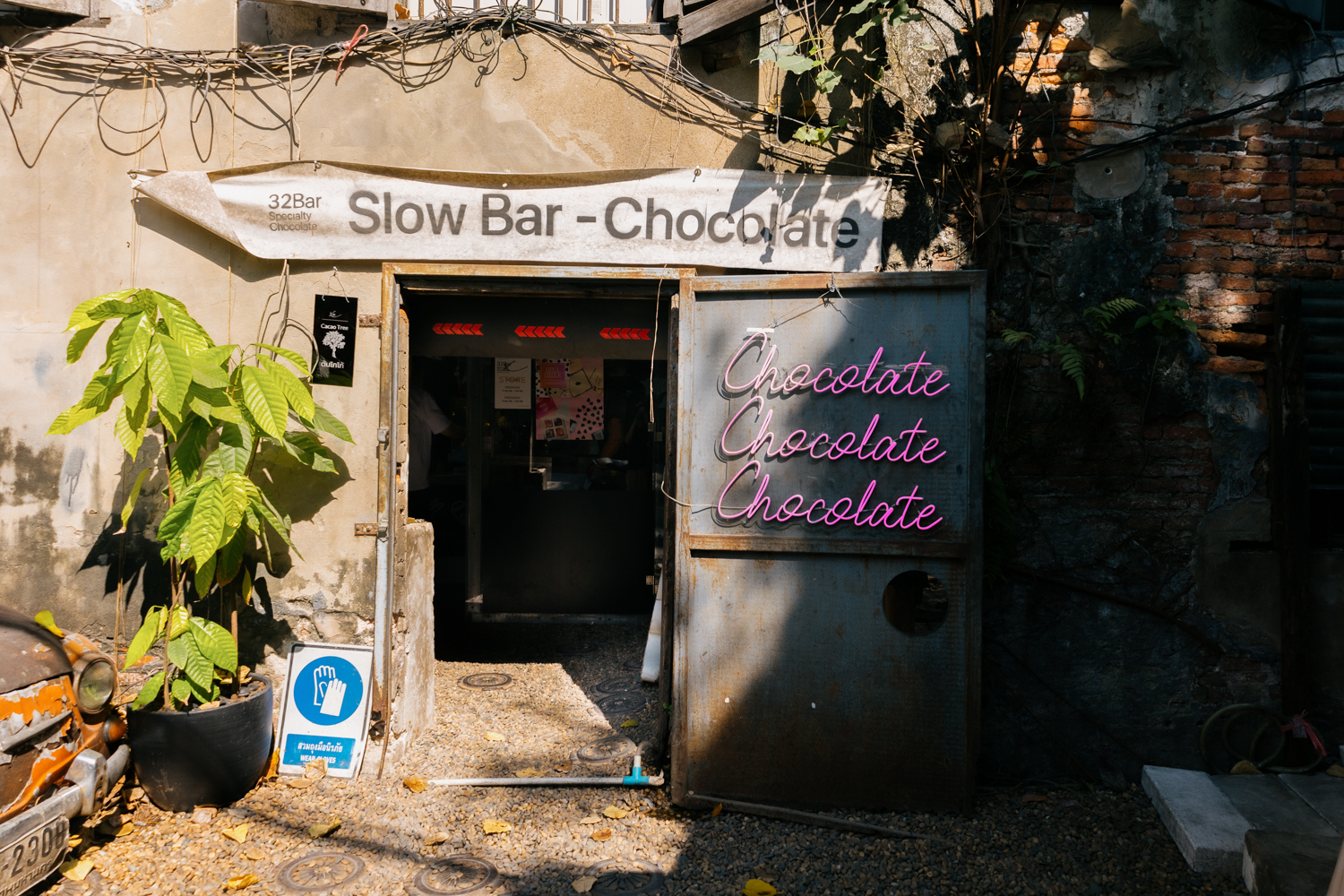 เดินลึกเข้ามาในตรอกโกดังทรงวาด จะเจอกับตึกเก่าที่ซ่อนความหอมรัญจวนของโกโก้เอาไว้ ที่นี่เขาจริงจังเรื่องเมล็ดโกโก้ไทย โดยคัดสรรเมล็ดที่ปลูกจากจังหวัดต่างๆ ทั่วไทยมาให้เราได้ชิมความต่างของคาแรกเตอร์ในแต่ละพื้นที่ ใครที่เป็นสายช็อกโกแลตสายดาร์ก สายละมุน ถ้ามาเดินทรงวาดแล้วไม่ได้แวะร้านนี้ถือว่ายังมาไม่ถึงนะ