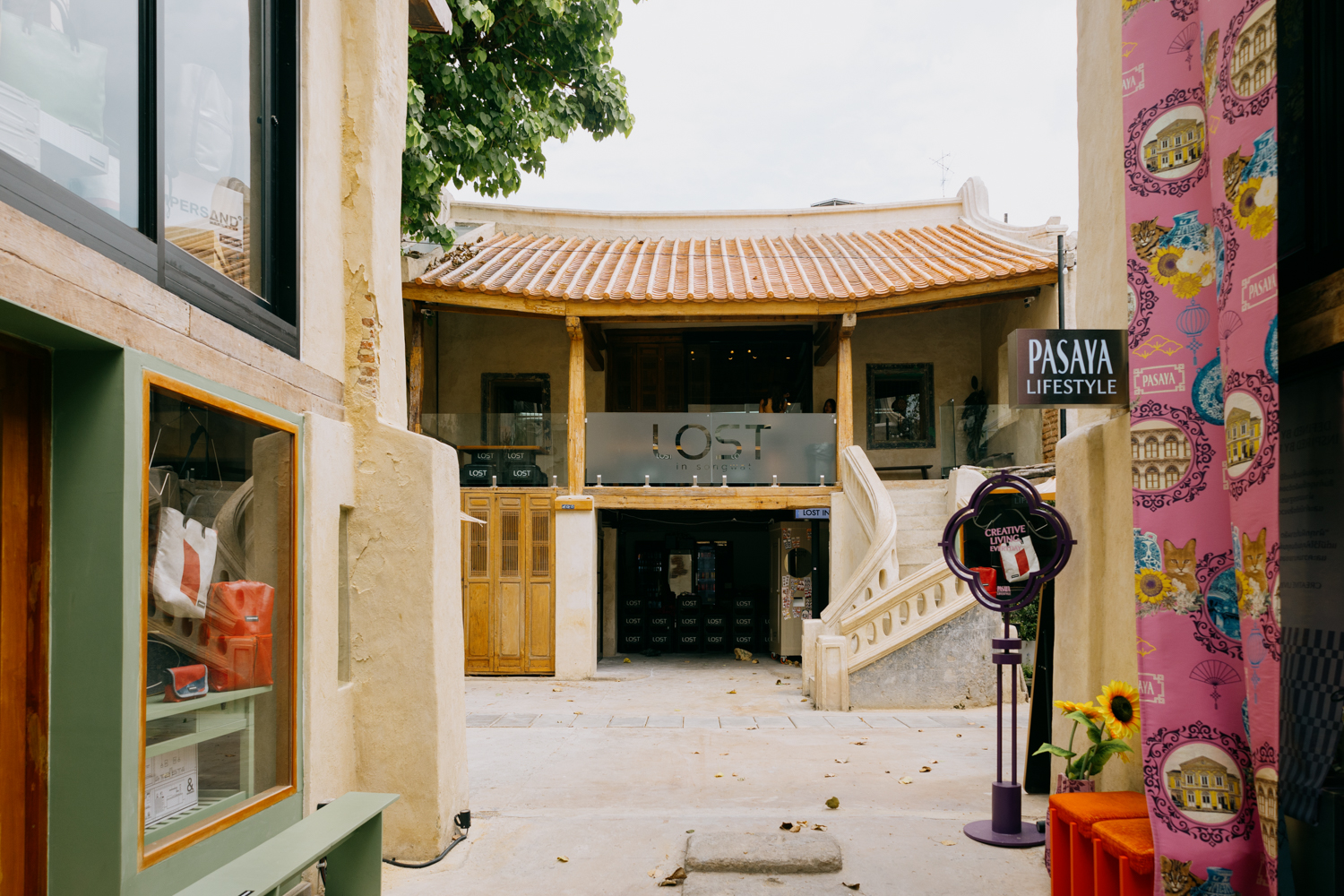 เริ่มต้นทริปด้วยการตามหา Hidden Gem ที่ซ่อนตัวอยู่ในซอยบ้านย่าวาศ ที่นี่ไม่ใช่คาเฟ่ริมถนนที่เดินผ่านแล้วเจอเลย แต่ต้องเดินลัดเลาะเข้าไปในตรอกสักนิด ความสวยของสถาปัตยกรรมแบบวัดจีนที่รออยู่ข้างในนั้นคุ้มค่ามาก