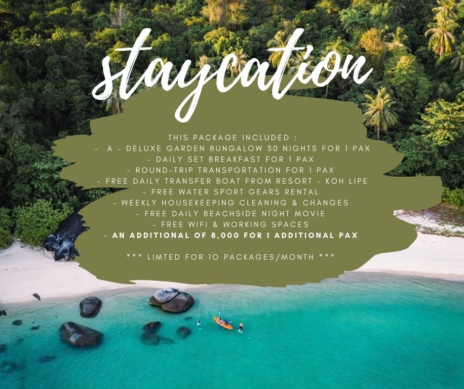 แพ็จเก็จเข้าพักรายเดือนบนรีสอร์ทส่วนตัว ที่ อาดัง ไอแลนด์ รีสอร์ท บนเกาะอาดัง จังหวัดสตูล รายเดือน 30 วัน